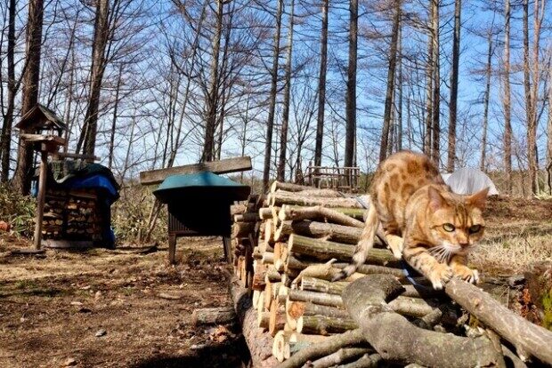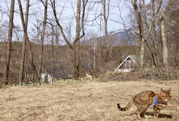 薄曇りだけども、急に暖かくなったので、ベンガル・ピノちゃんは外に出たがり、