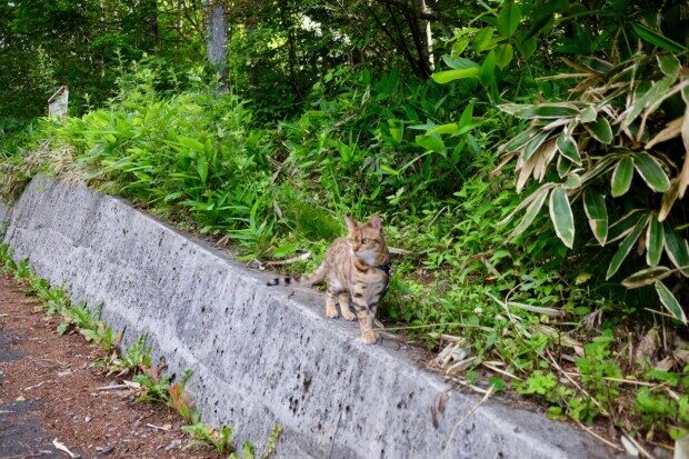 途中で「肩」にかついであげたら、ゴロゴロ鳴いてたので、歩くの疲れたちゃったのでしょうね。