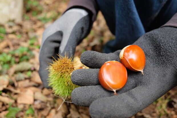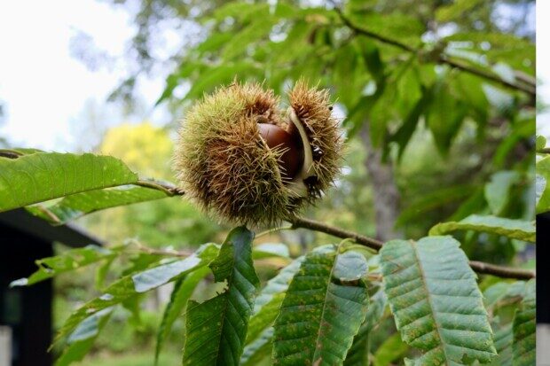 木に1個だけ残して収穫完了。栗ごはんにしましょう〜