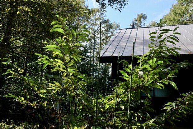 北側道路沿いに、5〜6年前に植えた食用栗が、今年はけっこうなり、