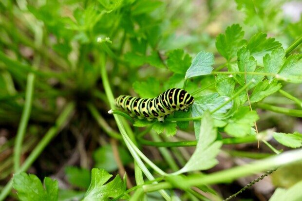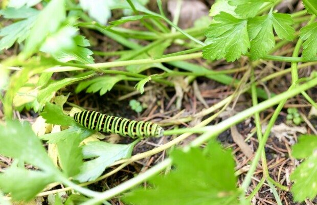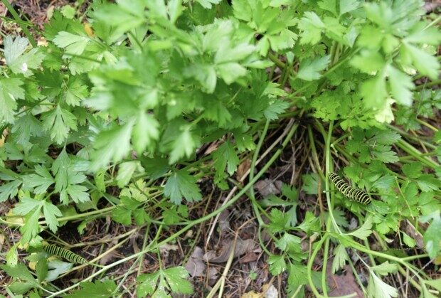 イタリアンパセリにいる、2匹の幼虫さんをチェック。