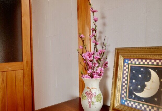 長坂のよってけし(農協)で、桃の花をゲット(200円)、
