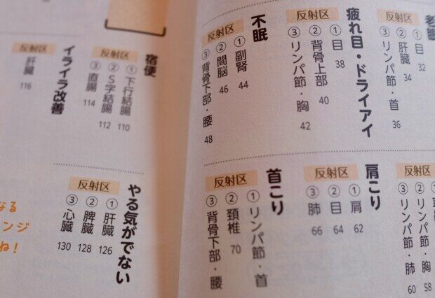 不眠の場合は、「副腎」「間脳」「背骨下部・腰」の反射区を押し、