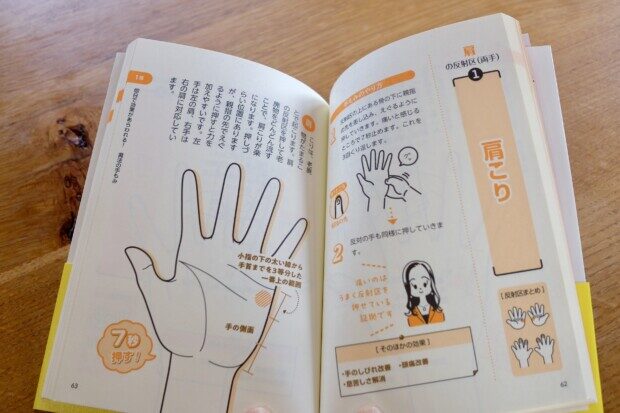 肩こりの場合は、「肩」だけでなく、「目」「肺」の反射区も押します。