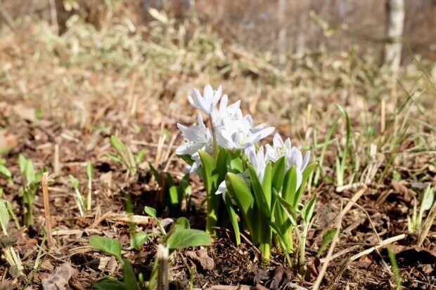 毎年、スイセンが一番乗りで咲いてましたが、今年は見慣れない白い花が!