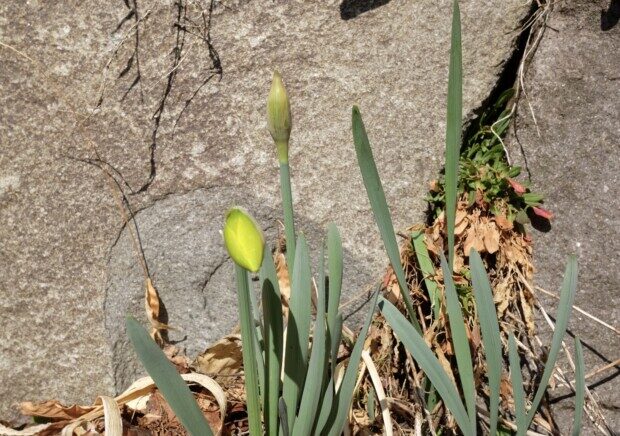 帰り道、そろそろ咲きそうなスイセンを見つけ、