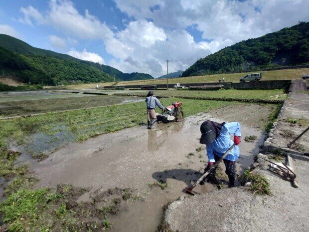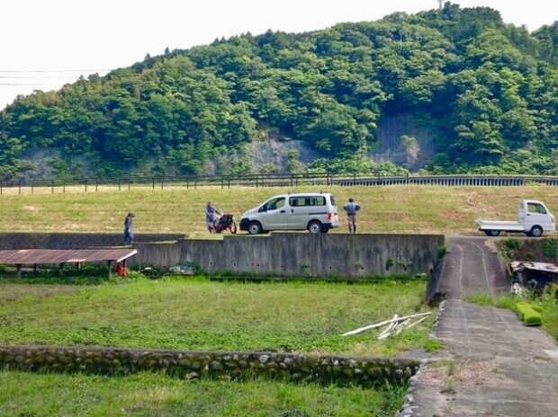 ご近所さんでは「田植え」をしていて、「雨があがってヨカッタね〜」と声かけあいながらの、田んぼ作業は楽しく、