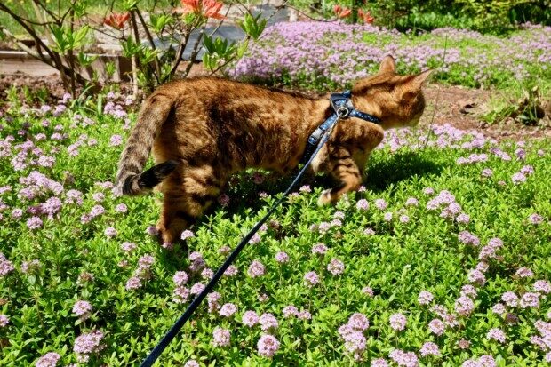 ベンガル・ピノちゃんと散歩に出たら、ご近所さんではクリーピングタイムが花盛りで、