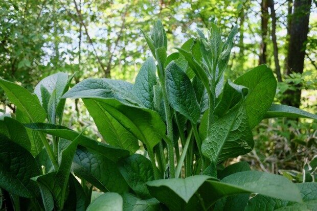 近所の空き地から移植したコンフリーも、青々と育ってます。