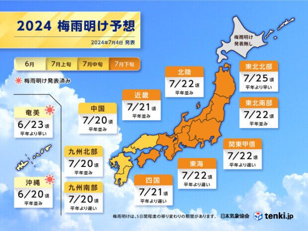 2024年の梅雨明け予想は、