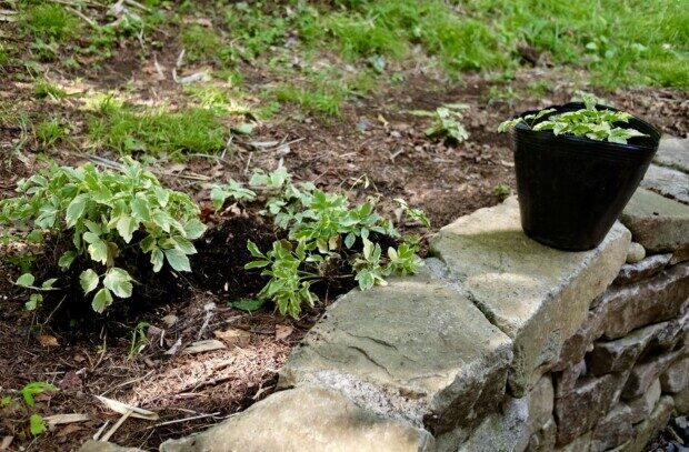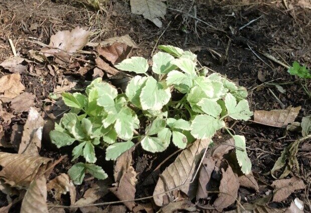 最初に頂いたイワミツバを、玄関先に植えてる状態を見て、