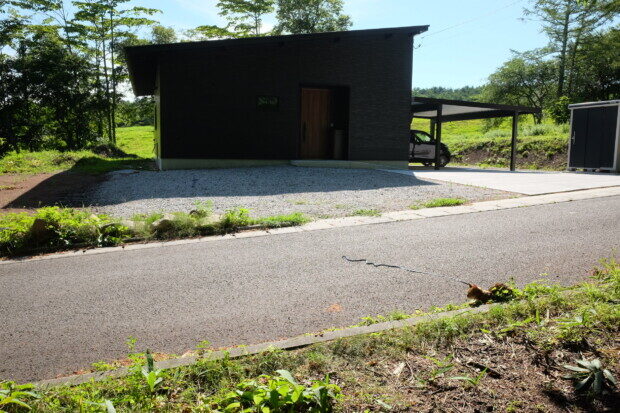 この南側道路沿いにも駐車スペースがありますが、ウチの車は通常、玄関に近い北側道路側に停めてます。