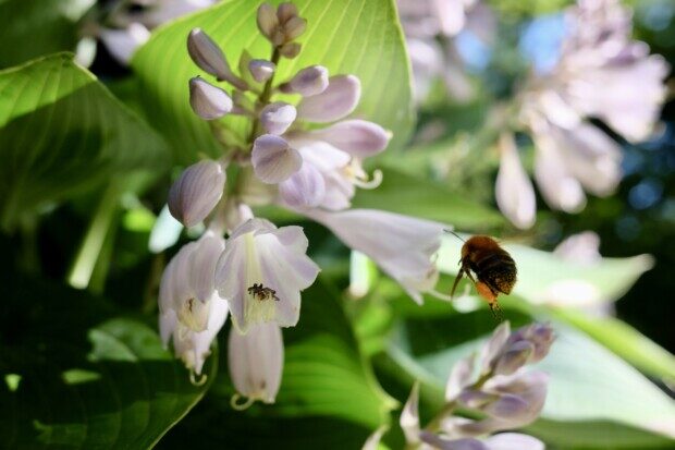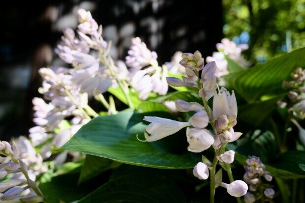 大鉢のギボウシは満開で、
