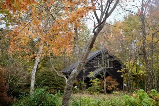 葉が落ちると、庭先から八ヶ岳が眺められるようになり、