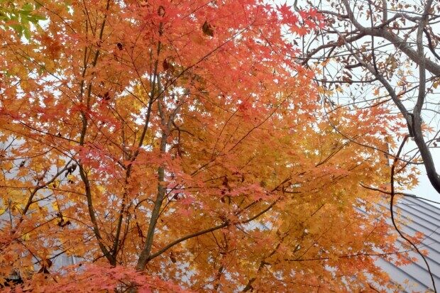10月下旬に一番乗りで紅葉し始めたお隣さんのモミジは、