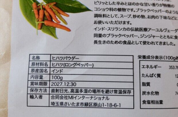 こちらのヒハツはやはり、胡椒代わりに使える、クセのないお味で、