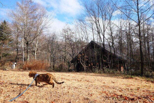 東側の戸口から出たとたんに、ビューンと駆け出し、南側ベランダから「もう、入る!」となりました!