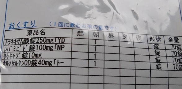 25年前の胃がん手術以来、ずーっと通っていた大学病院から処方されていた、レバミピドとタケキャブも処方されていて、