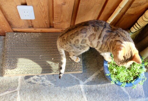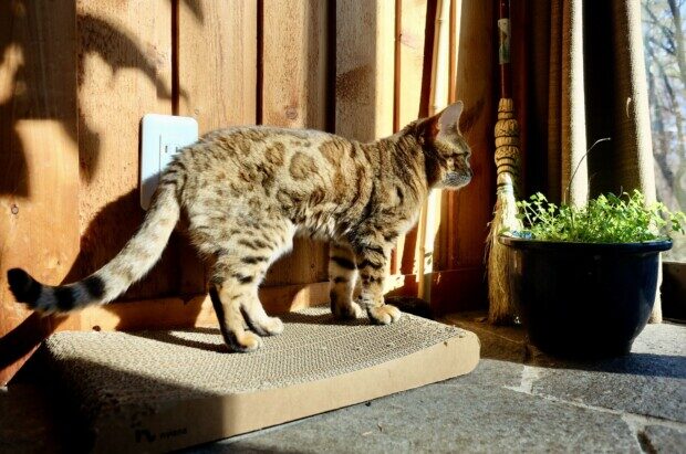 コチラで「爪とぎ」する、「新らしい条件づけ」に移行し、柱の損壊を防ぐ事が出来ました〜