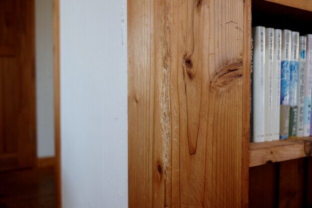 この柱のキズは、ピノちゃんの「古い条件づけ」=「爪とぎ」の跡でして・・