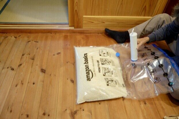 で、そうなると、精米しても危ない・・とのことで、「布団圧縮袋」を使って真空パックにする方法を教えてもらい、早速注文。