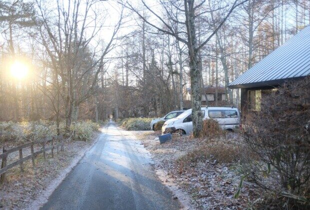 この時期の清里高原は、スタットレスタイヤが必須です。